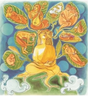 Nếu say đắm buông lung thì tham ái tăng lên hoài như giống cỏ mạn la mọc tràn lan, từ đời này tiếp đời nọ như vượn chuyền cây tìm trái.