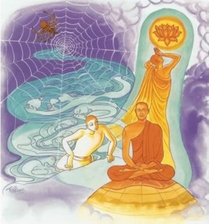 Những người say đắm ái dục, trôi theo ái dục là tự lao mình vào lưới trói buộc, như nhện mắc lưới. Ai dứt được sự buộc ràng, không còn dính mắc, thì sẽ lìa mọi thống khổ mà ngao du tự tại (*).
