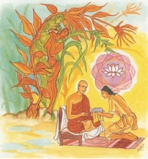 Cỏ làm hại ruộng vườn, tham dục làm hại thế nhân.Vậy nên cúng dường cho người lìa tham, sẽ được quả báo lớn.