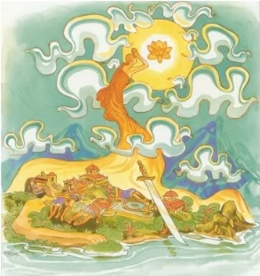 [Theo Chú Giải: “… Mẹ (mata) là ẩn dụ cho lòng tham ái (tanha), và cha (pita) là ẩn dụ của ngã mạn (mana). Chính vì tham ái và ngã mạn mà ta phải tái sinh nhiều đời, nhiều kiếp trong cõi ta bà luân hồi này. Hai vị vua chính là hai biên kiến của vô minh: thường kiến (eternalism) và đoạn kiến (annihilationism), thường tạo ra nhiều tranh cãi vô ích, cần phải được phá bỏ. Vương quốc lãnh thổ kia chính là 6 căn và 6 trần: mắt, tai, mũi, lưỡi, thân, ý, và sắc, thanh, hương, vị, xúc, pháp. Vị Quốc khố đại thần (treasurer) là để chỉ lòng tham đắm dục lạc phát sinh và chất chứa từ 6 căn đó. Sau cùng, hổ tướng thứ năm chính là con quỷ thứ năm làm cản trở sự định tâm, phát tuệ. Ðó là “nghi” của 5 triền cái: tham dục, sân hận, hôn trầm, trạo cử, và hoài nghi. Sau khi đã đoạn diệt tất cả các chướng ngại nầy thì hành giả mới thong dong, tự tại, đi đến giải thoát …”]